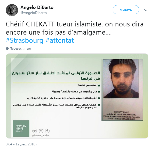 Также известно, что имя подозреваемого - Шериф Шека. Сообщается, что именно его зафиксировали камеры наблюдения. Это 29-летний мужчина, который родился в Страсбурге.
