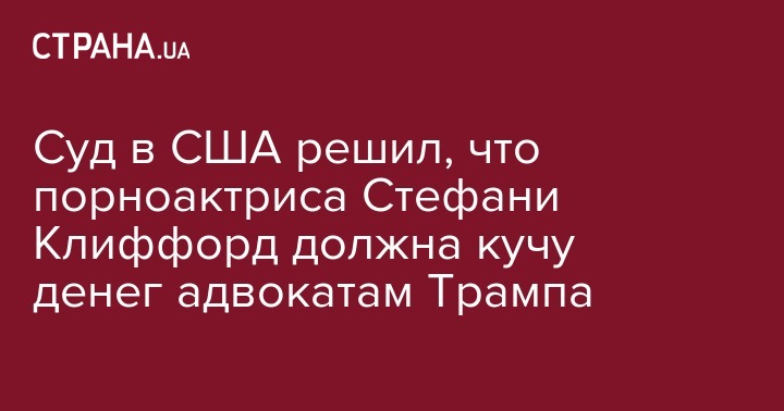 Суд Лос-Анджелеса принял решение о том, что бывшая порноактриса Стефани Клиффорд, которая подавала иск против Дональда Трампа, должна оплатить судебные издержки адвокатам президента США. Сумма компенсации - $293 000. Об этом передает ТАСС со ссылкой на канал CNBC.