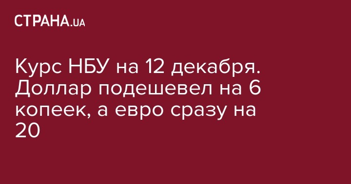 Курс НБУ на 12 декабря. Доллар подешевел на 6 копеек, а евро сразу на 20