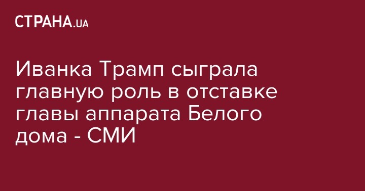 Иванка Трамп сыграла главную роль в отставке главы аппарата Белого дома - СМИ