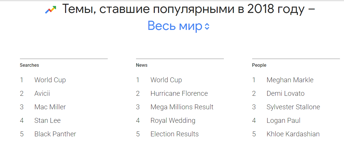 Google опубликовал рейтинг "Год в поиске", в котором указаны самые популярные запросы в поисковике в 2018-ом. Самой популярной персоной оказалась Меган Маркл, герцогиня Сассекская. Об этом свидетельствуют данные, опубликованные на сайте.