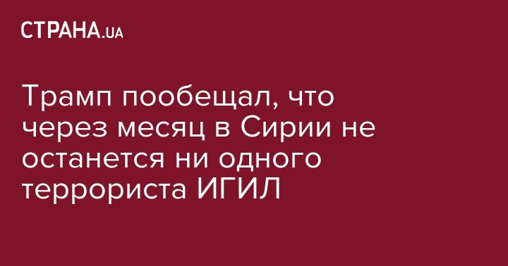 Члены террористической группировки "Исламское государство" будут выбиты с удерживаемых ими территорий за месяц. Такое заявление сделал президент США Дональд Трамп, передает Yeni Safak.