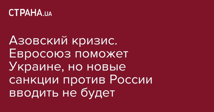 Азовский кризис. Евросоюз поможет Украине, но новые санкции против России вводить не будет