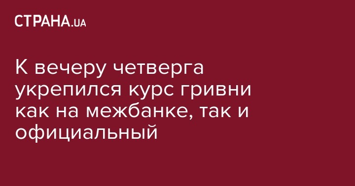 К вечеру четверга укрепился курс гривни как на межбанке, так и официальный
