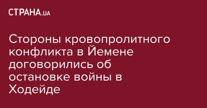 Стороны договорились о перемирии в районе Ходейды. К северу от города отойдут хуситы. К югу - части иностранной коалиции. Сама Ходейда будет демилитаризована в течение месяца.