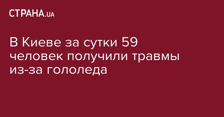 В столице за последние сутки из-за гололеда травмировались 59 человек, 9 из них получили серьезные повреждения. Об этом УНН сообщила советник директора Департамента здравоохранения КГГА Наталья Вишневская.