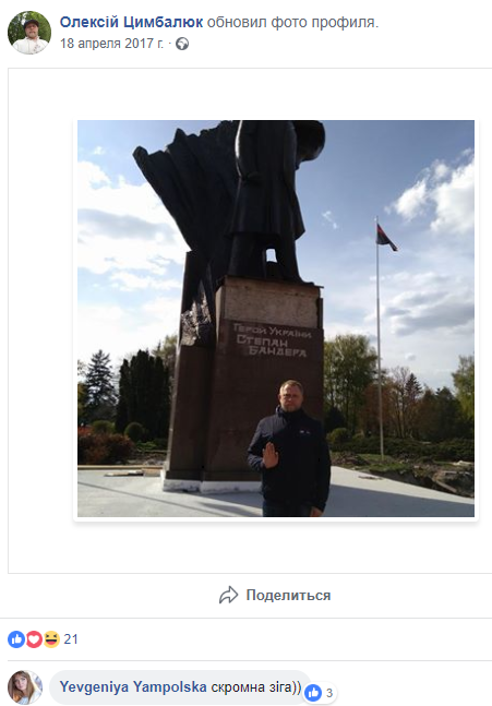 Ну, и под занавес – "застенчивая зига" на фоне памятника Степану Бандере.