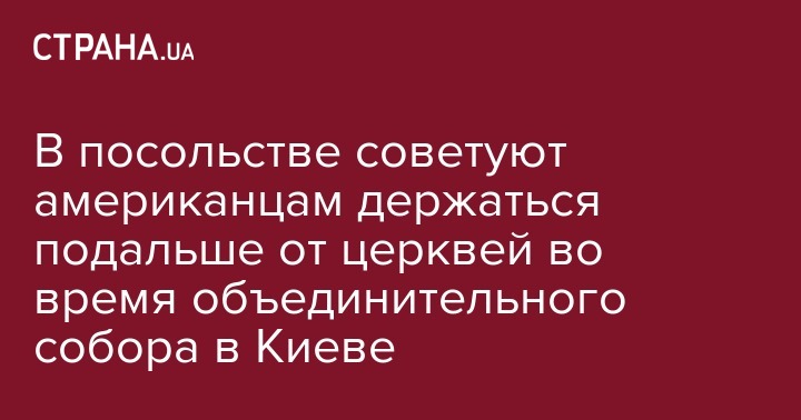 Посольство США рекомендует американцам в Украине завтра, 15 декабря, избегать массовых скоплений людей и демонстраций возле религиозных сооружений в связи с проведением в Киеве Объединительного собора. Об этом говорится в сообщении на сайте Посольства США в Украине.