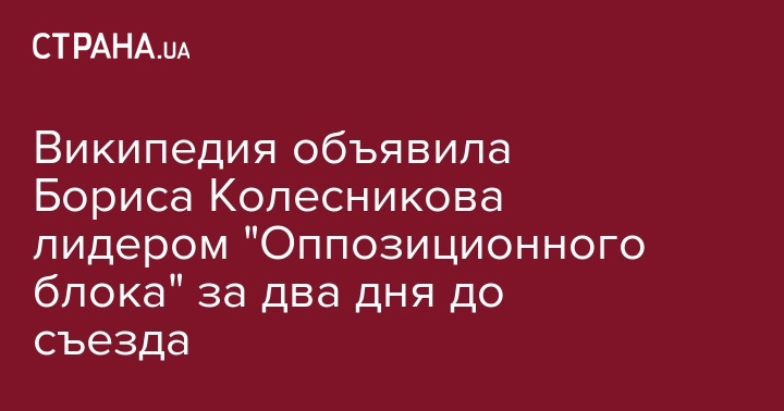 Онлайн-энциклопедия Википедия на странице "Оппозиционного блока" накануне скандального съезда партии, который должен состоятся завтра, 15 декабря, уже назвала ее лидера.