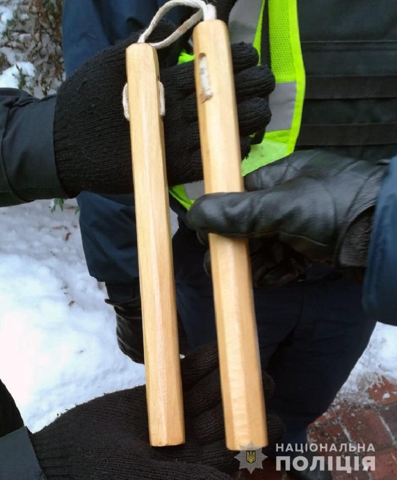 13:00  В полиции показали нунчаки, которые угрожали Томосу.