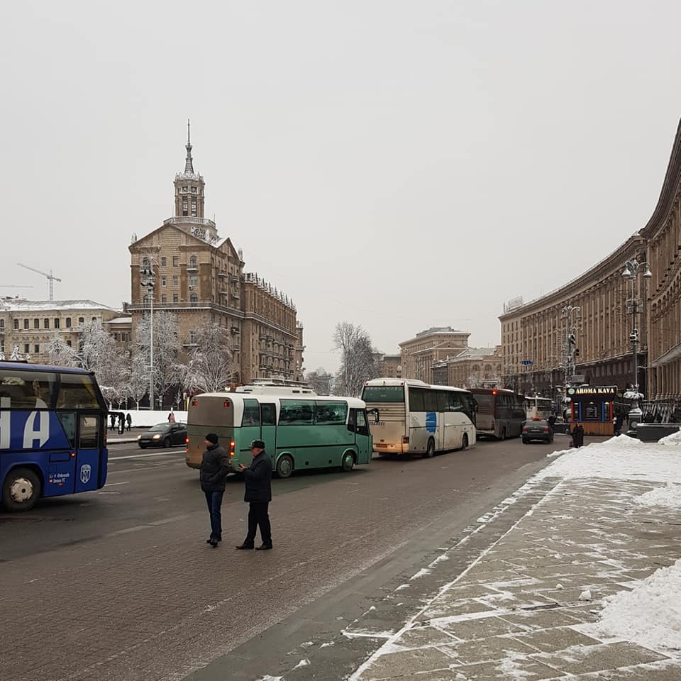 8:49  На Крещатике уже много автобусов, пишут в Facebook киевляне.