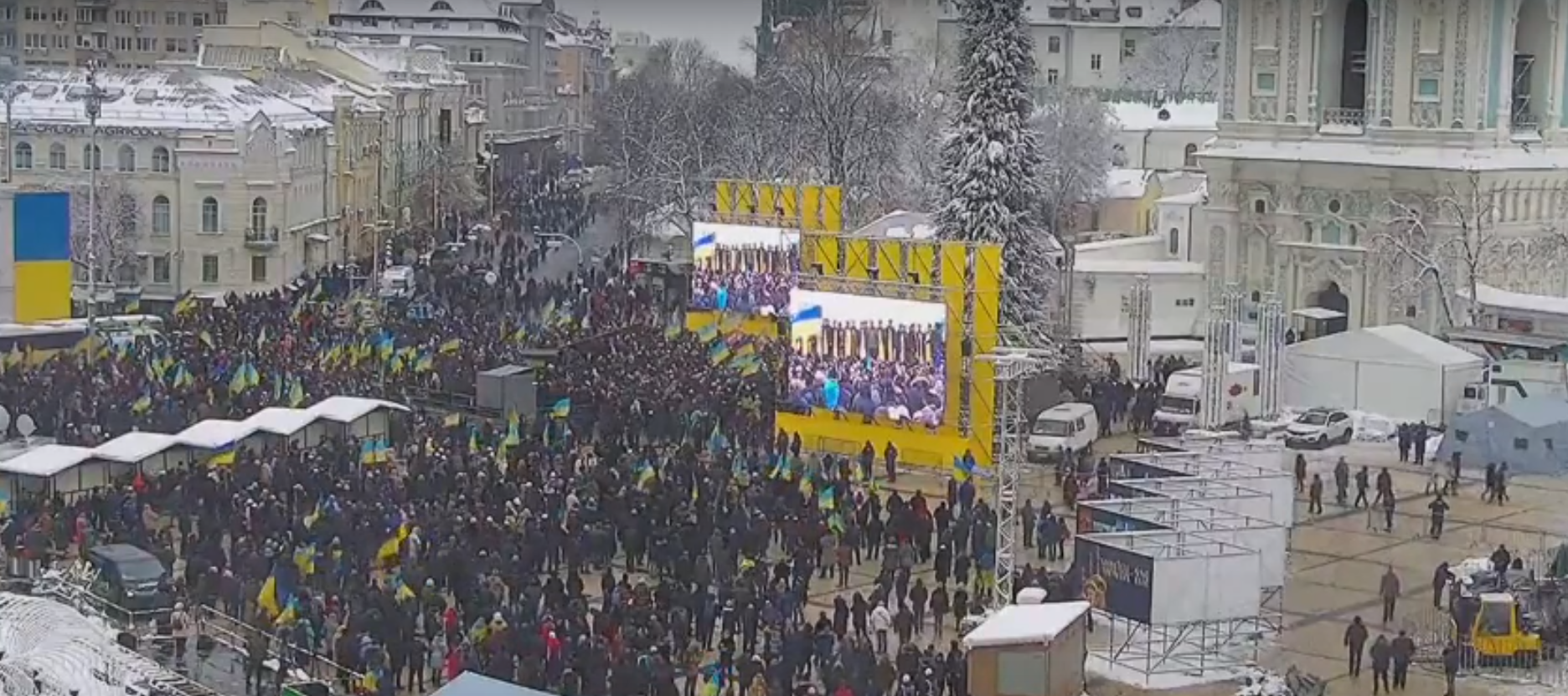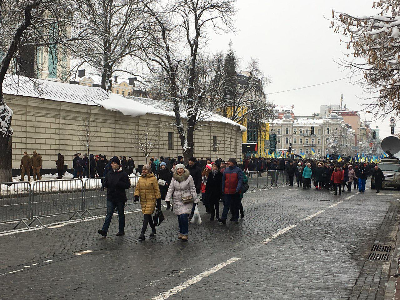 Общий фон: политическое мероприятие с этно-державным содержанием. Первый выступающий (кто-то от властей) прямо так и сказал, что это, мол, продолжение Майдана. И собрались, по его мнению, здесь в основном участники Майдана. Все идет в духе "одна держава - одна церква". Интересно, что менее всего говорится от том, что с Томосом от Константинополя Украинская церковь входит на равных в семью мирового православия. В основном о том, что Украина "избавляется от духовного рабства", обретает полную независимость с получением "своей" церкви. Интересно, а что же было четверть века до этого? Разве не было УПЦ КП и УАПЦ, более чем "своих" церквей? И разве УПЦ МП сейчас куда-то исчезнет, испепеленная фактом наличия "единой" церкви?