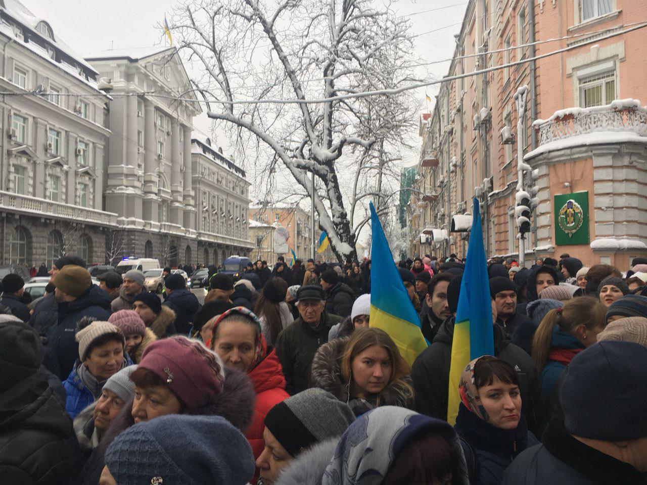 9:34  На площади перед Софией Киевской много бюджетников - в частности учителей. Журналисты, которые ведут онлайн-трансляции, опрашивают людей и часто встречают работников сферы образования.