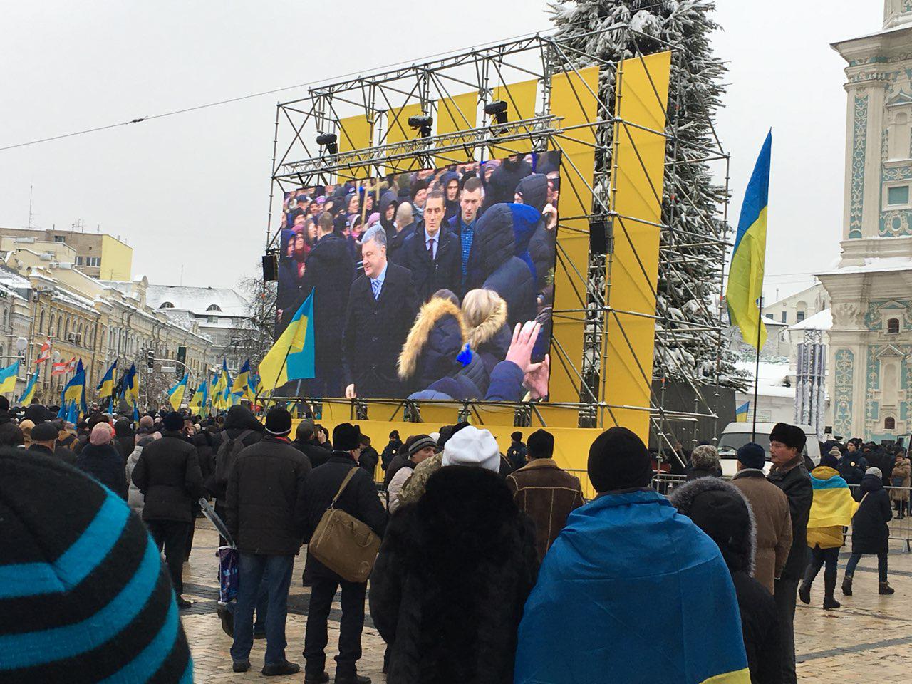 11:28  Проход Порошенко через площадь транслируют на экране.