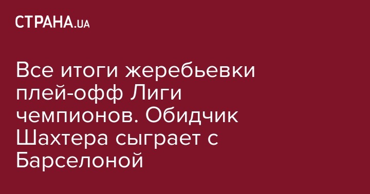 Напомним, что первые матчи 1/8 финала Лиги чемпионов пройдут 12-13 и 19-20 февраля, а ответные 5-6 и 12-13 марта.