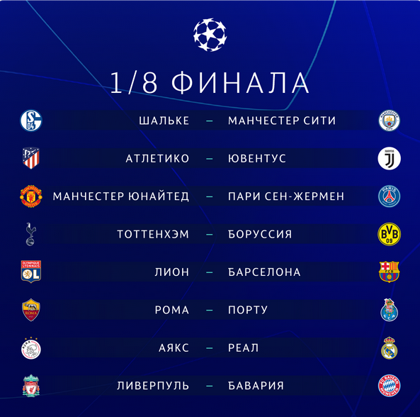 Итак, все пары 1/8 Лиги чемпионов сезона 2018/2019