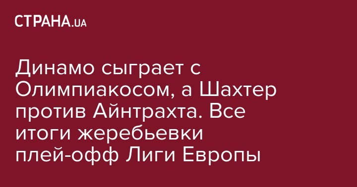 А вот в Лиге Европы слепой жребий выбрал нашим клубам непростых соперников. За выход в 1/8 финала Динамо сразится против греческого Олимпиакоса, а донецкий Шахтер сыграет с немецким Айнтрахтом. Добавим, что УЕФА по прежнему разводит клубы России и Украины.