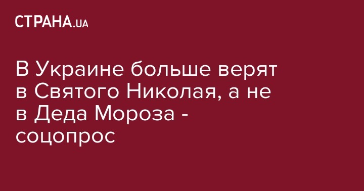 Примерно половины украинцев, а именно 43%, говорят, что верят в Святого Николая. При этом его популярность за два года выросла на 6%. Одновременно в Деда Мороза верят 25%, а почти 70% – не верят. Об этом свидетельствуют данные опроса социологической группы "Рейтинг".