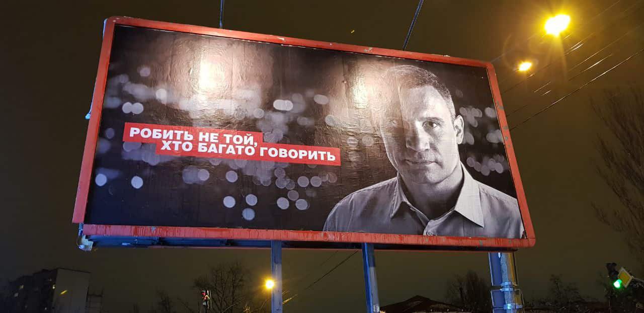 В Киеве на днях появилась политическая реклама с портретом мэра Киева Виталия Кличко и лозунгом: "Делает не тот, кто много говорит".