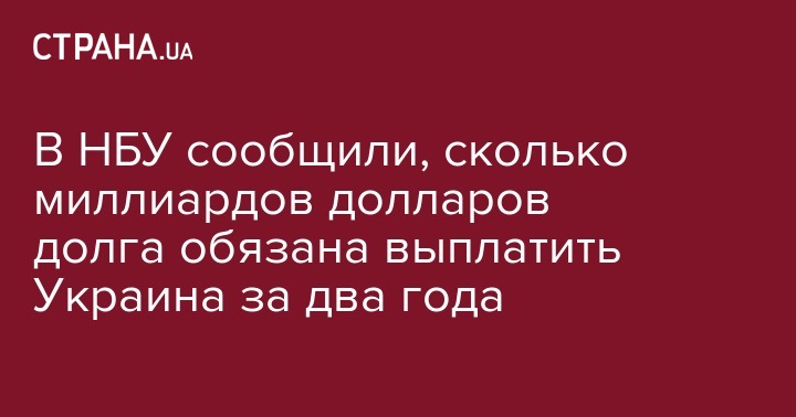 За последующие два года Украина по плану должна выплатить 17 миллиардов долларов государственного долга, включая проценты. Об этом сообщает Национальный банк Украины.
