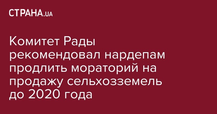 Сегодня, 18 декабря, парламентский комитет по вопросам аграрной политики и земельных отношений рекомендовал Верховной Раде принять законопроект №9355-5 о продлении моратория на продажу земель сельхозназначения до 1 января 2020 года. Об этом сообщил председатель подкомитета по вопросам земельных отношений комитета Олег Кулинич в Facebook.