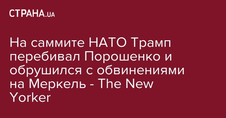 Президент США Дональд Трамп в последний день саммита НАТО, который проходил в июле 2018 года в Брюсселе, с опозданием прибыл на заседание, где выступали президенты Украины и Грузии, докладывая об интересе их стран ко вступлению в Альянс, перебил их и устроил скандал. Об этом сообщает The New Yorker.