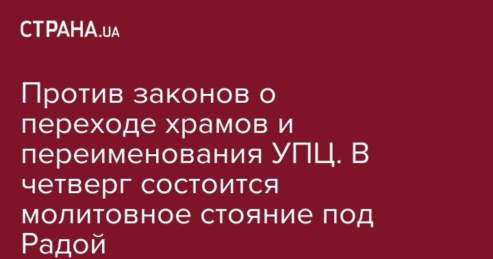 В четверг, 20 декабря в 10.00 возле Верховной Рады Украины начнется молитвенное стояние верующих УПЦ МП против принятия законопроектов, которые в УПЦ считают рейдерскими. Речь идет о законопроектах № 4128, № 4511 и № 5309, которые находятся в повестке дня на 20 декабря у нардепов, сообщают организаторы.
