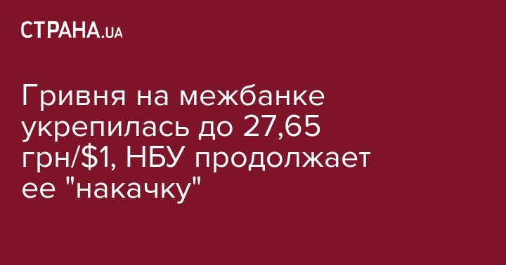 Гривня на межбанке укрепилась до 27,65 грн/$1, НБУ продолжает ее "накачку"