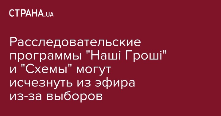 Программы "Наші Гроші" и "Схемы", которое провели десятки известных расследований (в том числе и против нынешней власти), могут исчезнуть из эфира UA:перший в связи с выборами. Об этом говорится в заявлении Bihus.info и руководителя проекта Дениса Бигуса в Facebook.