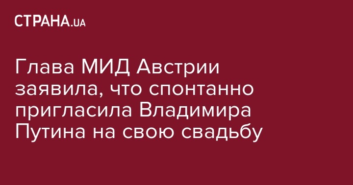 Министр иностранных дел Австрии Карин Кнайссль уверяет, что приглашение президента РФ Владимира Путина на свадьбу было спонтанным решением без надежды, что он приедет. Об этом она заявила в интервью телеканалу ServusTV.