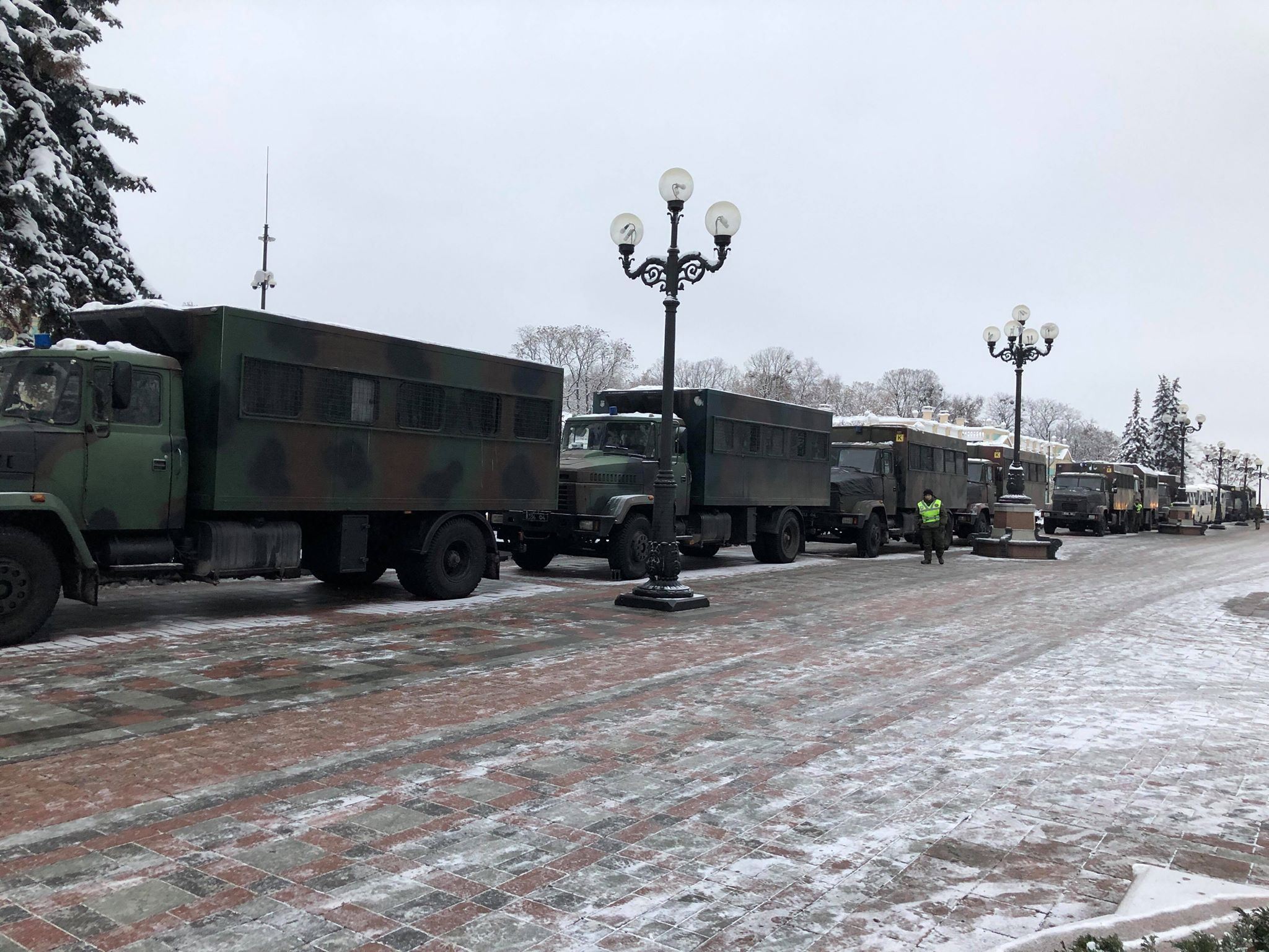 15:20  Верующие по-прежнему рядом с Радой. Против них нагнали несколько машин спецтехники.