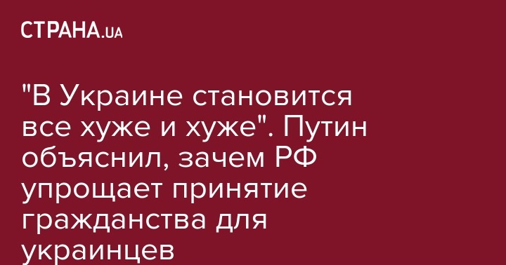 "В Украине становится все хуже и хуже". Путин объяснил, зачем РФ упрощает принятие гражданства для украинцев