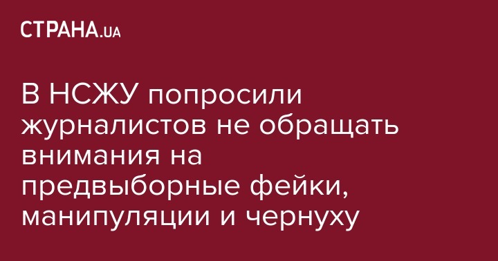 В Национальном союзе журналистов Украины призвали сотрудников СМИ не поддаваться давлению политиков и их предвыборных штабов и честно информировать свою аудиторию о ходе избирательной кампании. Всех журналистов попросили отказаться от "чернухи", фейков и манипуляций.