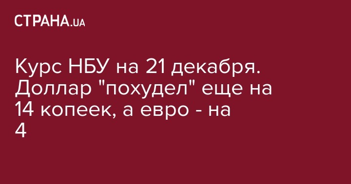 Курс НБУ на 21 декабря. Доллар "похудел" еще на 14 копеек, а евро - на 4