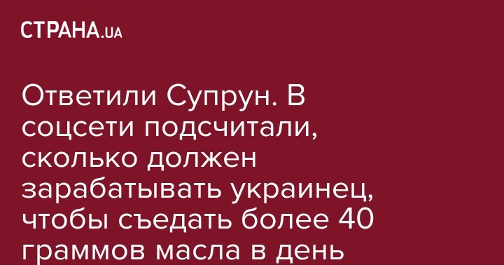 В соцсетях появилась реакция на вчерашнюю порцию советов от главы Минздрава Ульяны Супрун, которая касалась сливочного масла. Напомним, и.о. министра советовала украинцам не есть более 40 граммов этого продукта ежедневно, чтобы не навредить здоровью.