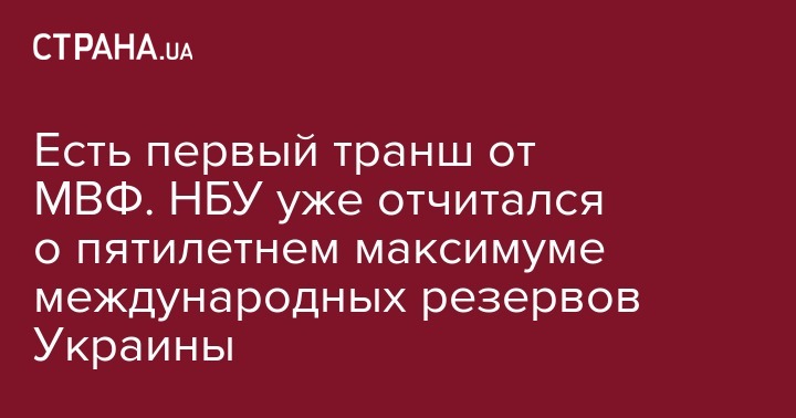 Есть первый транш от МВФ. НБУ уже отчитался о пятилетнем максимуме международных резервов Украины