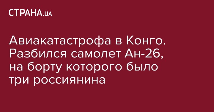 В четверг, 20 декабря, в Демократической Республике Конго разбился самолет Ан-26, принадлежащий авиакомпании Gomair. По неподтвержденным данным, на его борту было 23 человека, в том числе, трое россиян. Об этом сообщает ТАСС.
