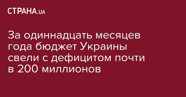 За январь-ноябрь 2018 года дефицит госбюджета Украины сократился до 183,6 млн. грн, при утвержденном в законе о госбюджете предельном уровне 80,6 млрд грн. Об этом сообщило Министерство финансов в пятницу, 21 декабря, передает Интерфакс.