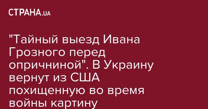 В Украину из США вернут вывезенную во время Великой Отечественной войны картину. Будет возвращено произведение художника Михаила Панина "Тайный выезд Ивана Грозного перед опричниной", которое похитили из Днепропетровского художественного музея.