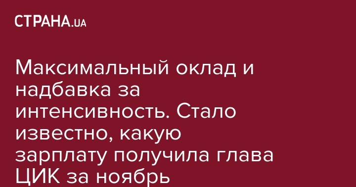 Секретарю ЦИК Наталье Бернацкой в ноябре было начислено 93,2 тыс. гривен зарплаты, в том числе 54 тыс. гривен премии, по 13,5 тыс. гривен оклада и надбавки за интенсивность труда, 10,6 тыс. гривен персональной надбавки и 1,6 тыс. гривен надбавки за выслугу лет.