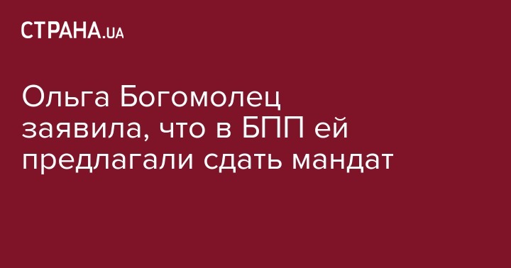 Народный депутат Ольга Богомолец рассказала, что представители фракции Блок Петра Порошенко предлагали ей сдать мандат. Об этом она заявила в эфире телеканала "НАШ".