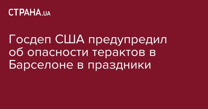 В дни рождественских и новогодних праздников в популярных туристических точках Барселоны (Испания) могут быть совершены теракты. Об этом предупреждает Госдепартамент США на своей странице в соцсети.