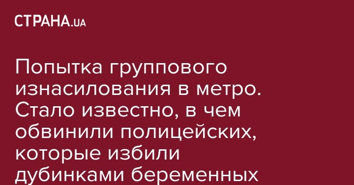В Киеве в попытке группового изнасилования обвинили полицейских столичного метро, которые в спецкомнате избили дубинками задержанных четырех женщин. Среди пострадавших - двое беременных женщин. Об этом сообщила адвокат потерпевших Светлана Оснач на своей станице в Facebook.