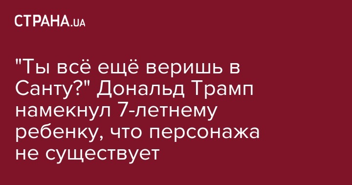 Президент США Дональд Трамп во время телефонного разговора с семилетним мальчиком обсудил с ним веру в Санта-Клауса. Видео разговора американского лидера с ребенком опубликовало издание The Daily Beast‏.