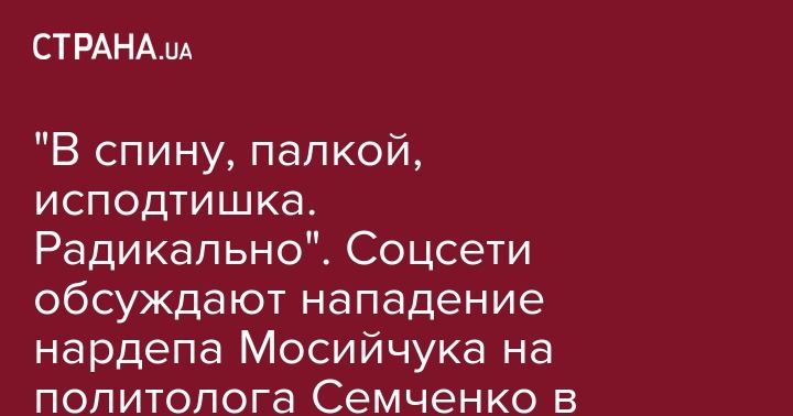 "В спину, палкой, исподтишка. Радикально". Соцсети обсуждают нападение нардепа Мосийчука на политолога Семченко в эфире ток-шоу