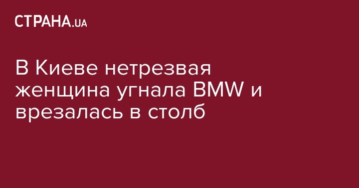Во вторник, 25 декабря, в Святошинском районе Киева женщина угнала автомобиль BMW. Она не смогла справиться с управлением, и врезалась в столб. По предварительной информации, в момент совершения преступления, женщина находилась в нетрезвом состоянии.