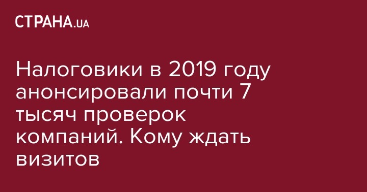 В 2019 году Государственная фискальная служба проведет 6721 проверку. Наибольшее количество проверок ожидается в компаниях в Киевской, Харьковской и Одесской областях.