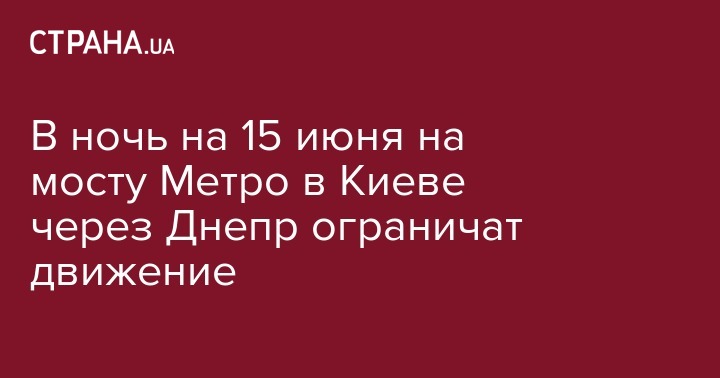 В ночь на 15 июня на мосту Метро в Киеве через Днепр ограничат движение