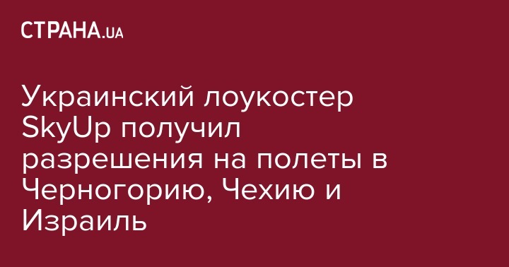 Украинский лоукостер SkyUp получил разрешения на полеты в Черногорию, Чехию и Израиль