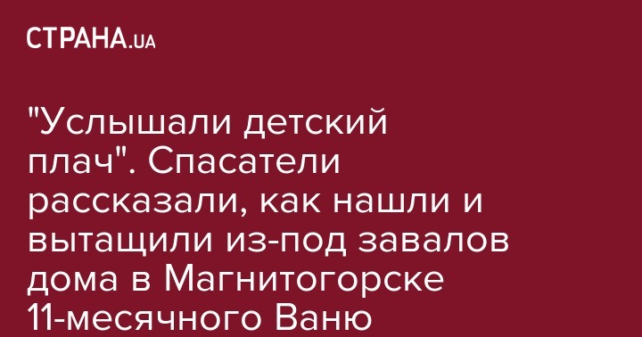 Напомним, 11-месячный ребенок, которого нашли под завалами обрушенного дома в Магнитогорске, пролежал там почти 36 часов.